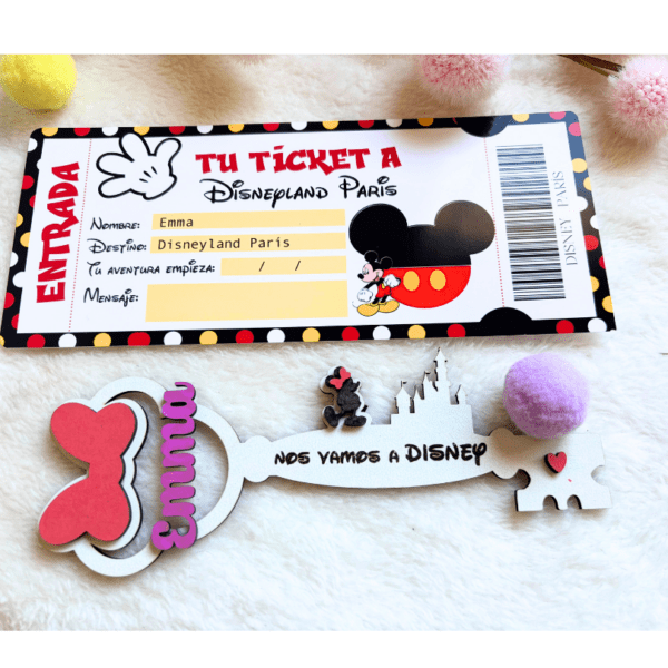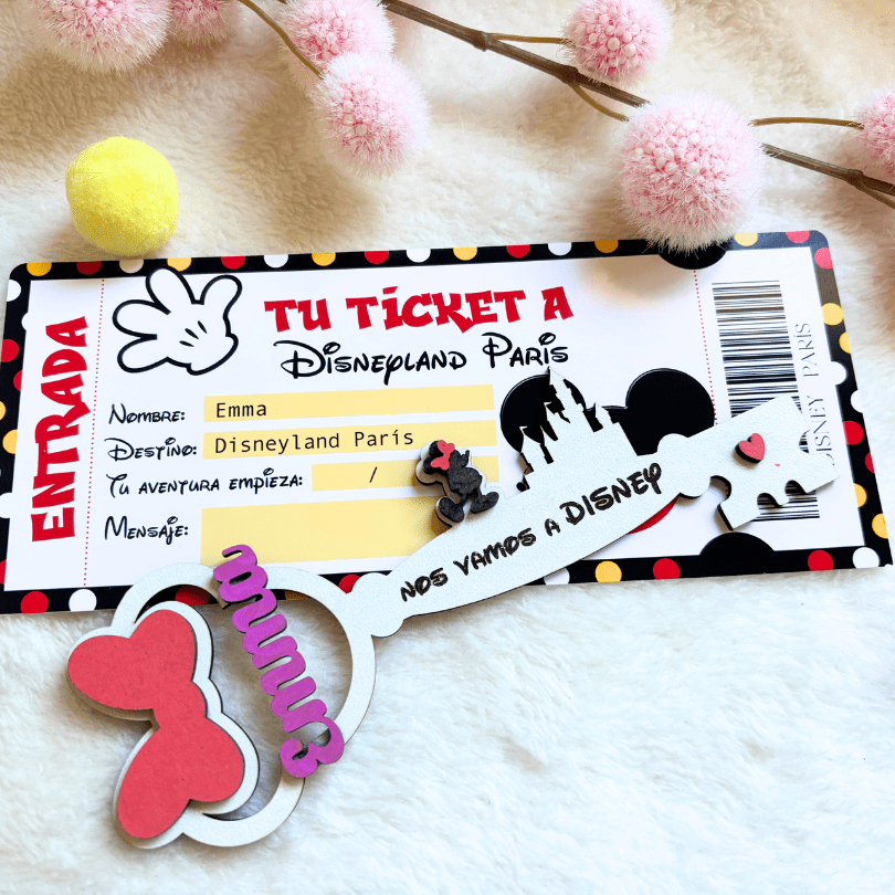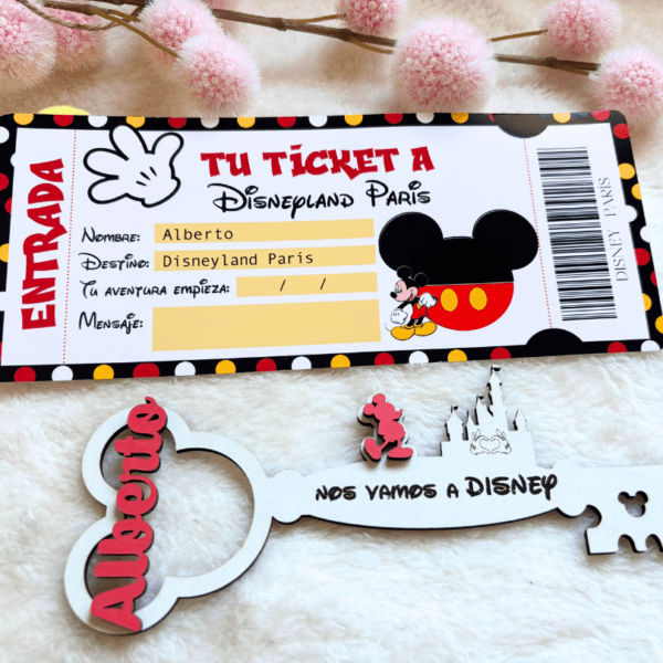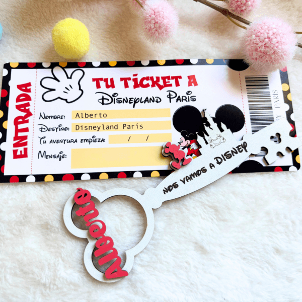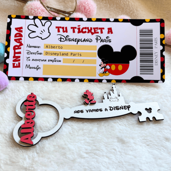 Pack de llave personalizada y ticket de entrada a Disneyland Paris.
