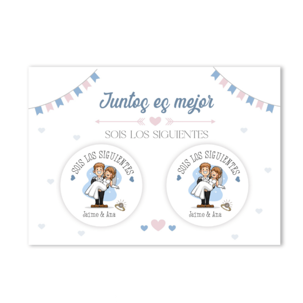 Puedes elegir entre la opción «Si quiero» o personalizar con el nombre de los novios, poner una frase que los identifique, etc